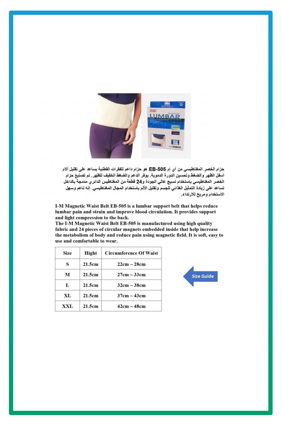 حزام بطن مغناطيسي بمقاس XXXL وموديل eb-505 لتوفير الدعم والتخفيف من الألم.